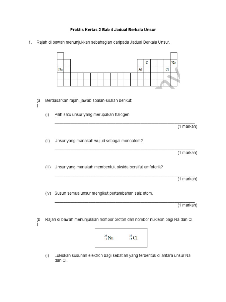 Praktis Kertas 2 Bab 4 Jadual Berkala Unsur Pdf